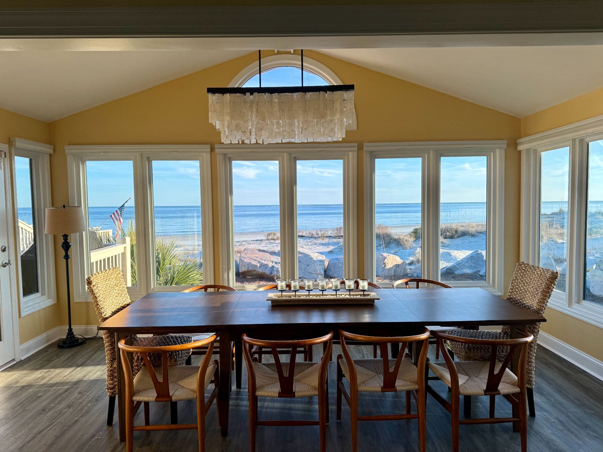 Unlike many beachfront properties that require a long walk down boardwalks, this home offers direct beach access—step off the deck and onto the sand. Located near the end of the beach, you’ll enjoy a more peaceful stretch of shoreline with less foot traffic and expansive coastal views.